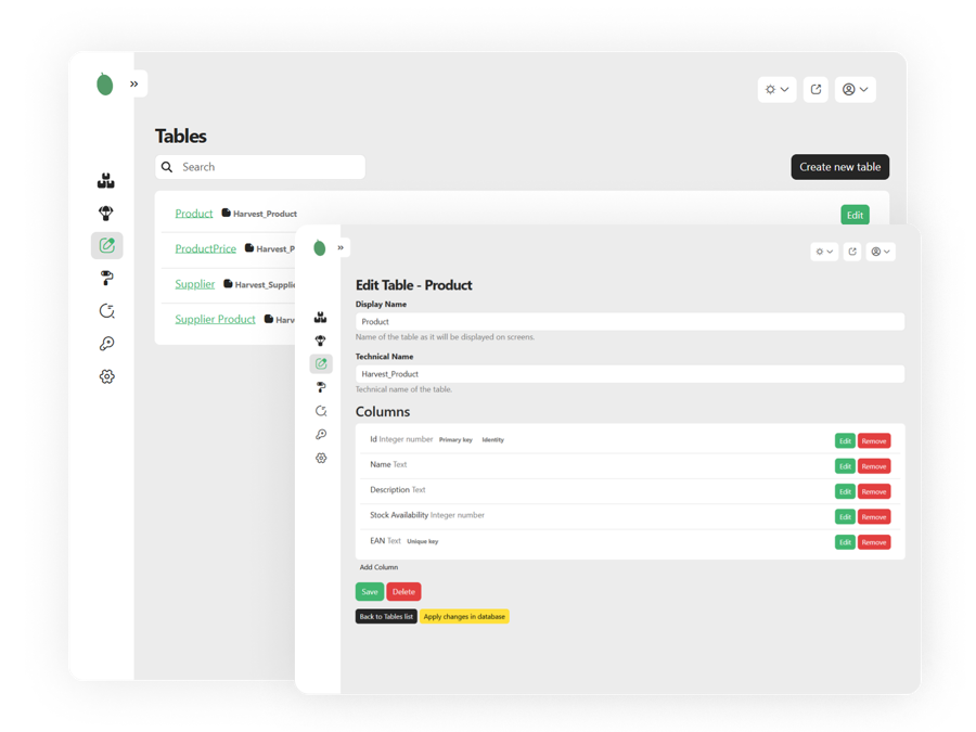 Nástroj, díky kterému si sami naklikáte tabulky přesně podle potřeby. Relační, s primárními a cizími klíči, s jasně nastavenými pravidly a omezeními.